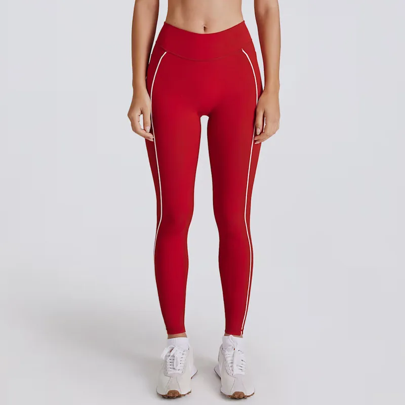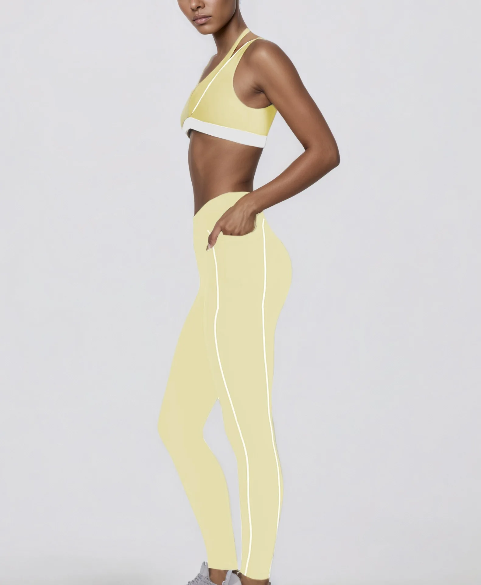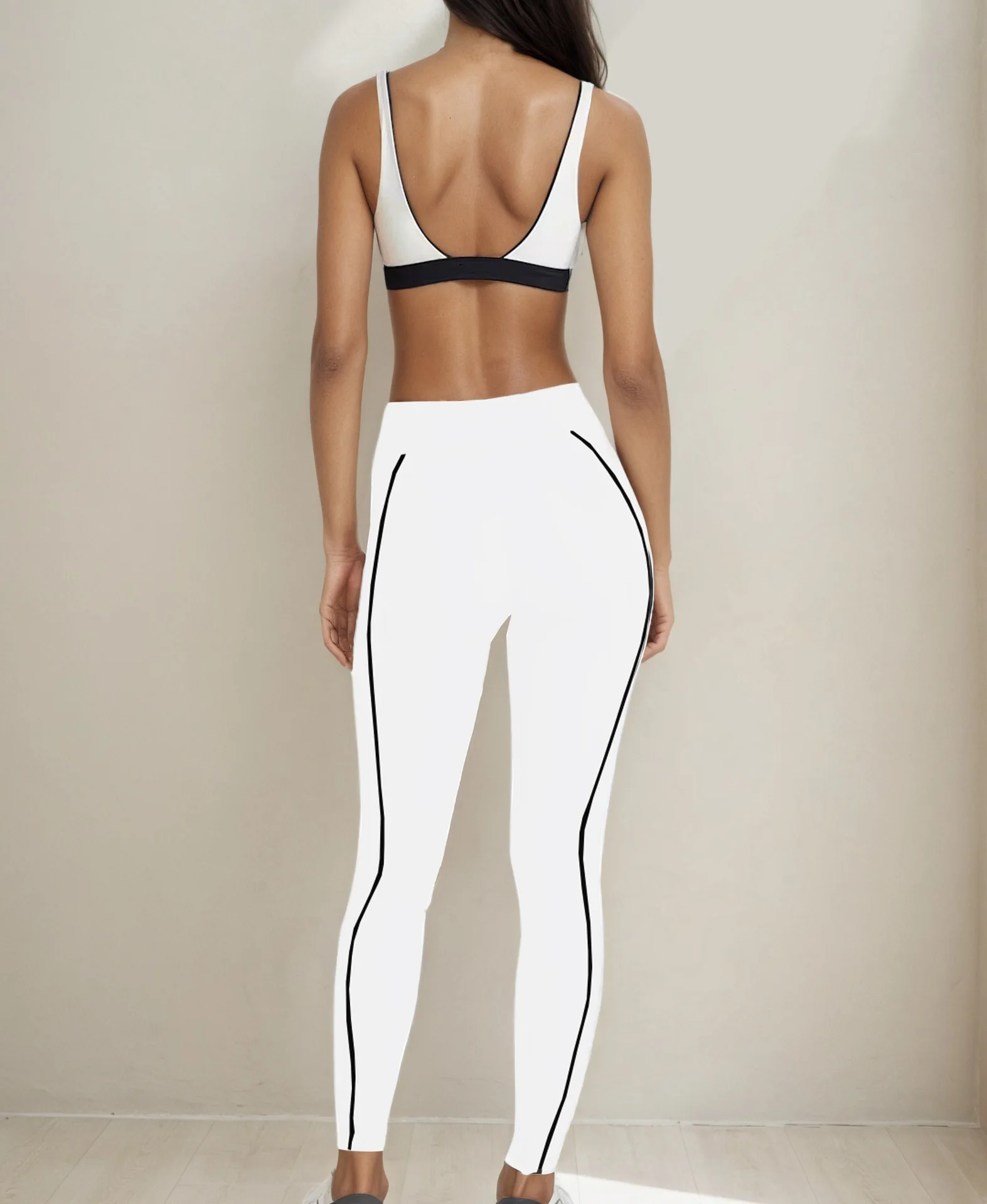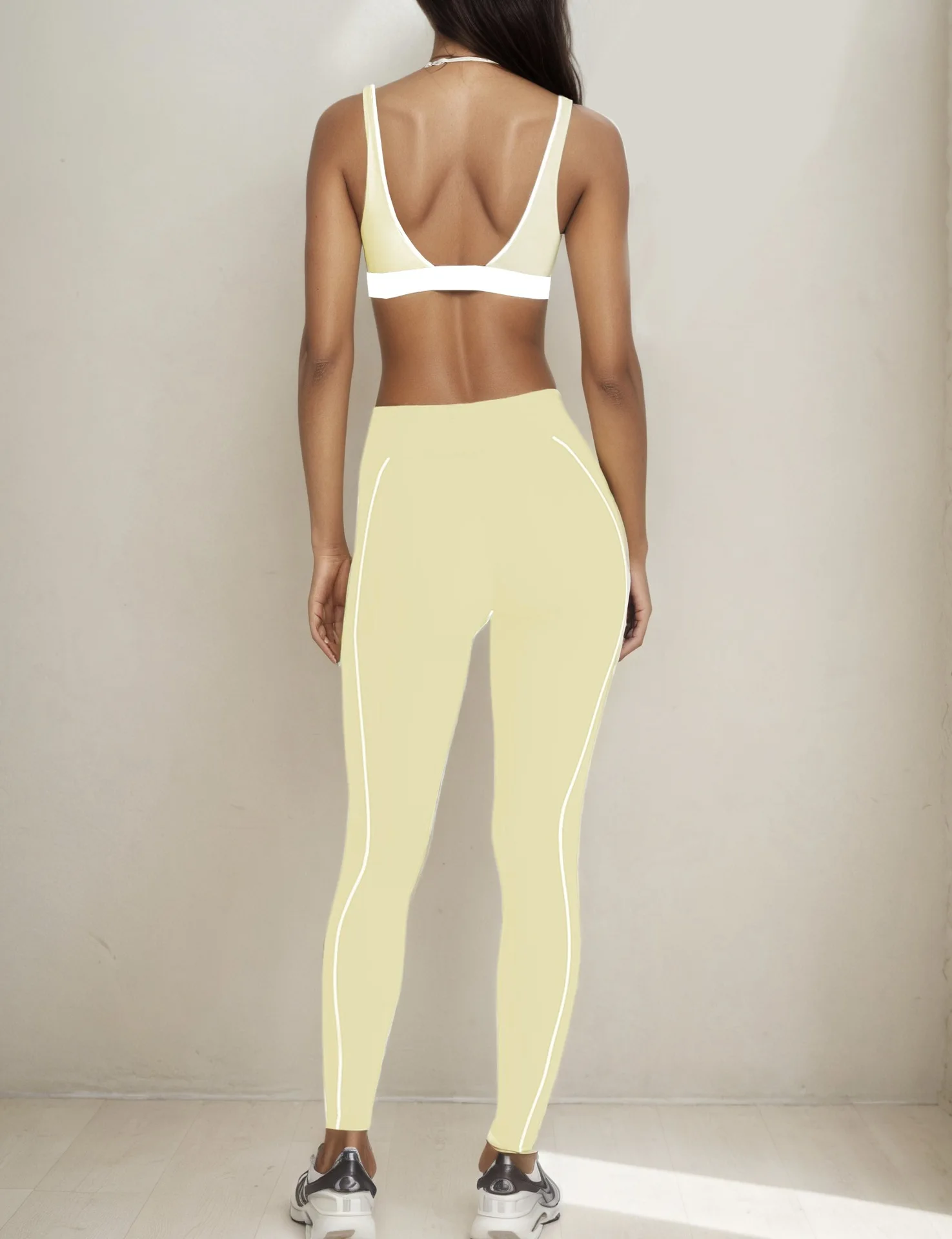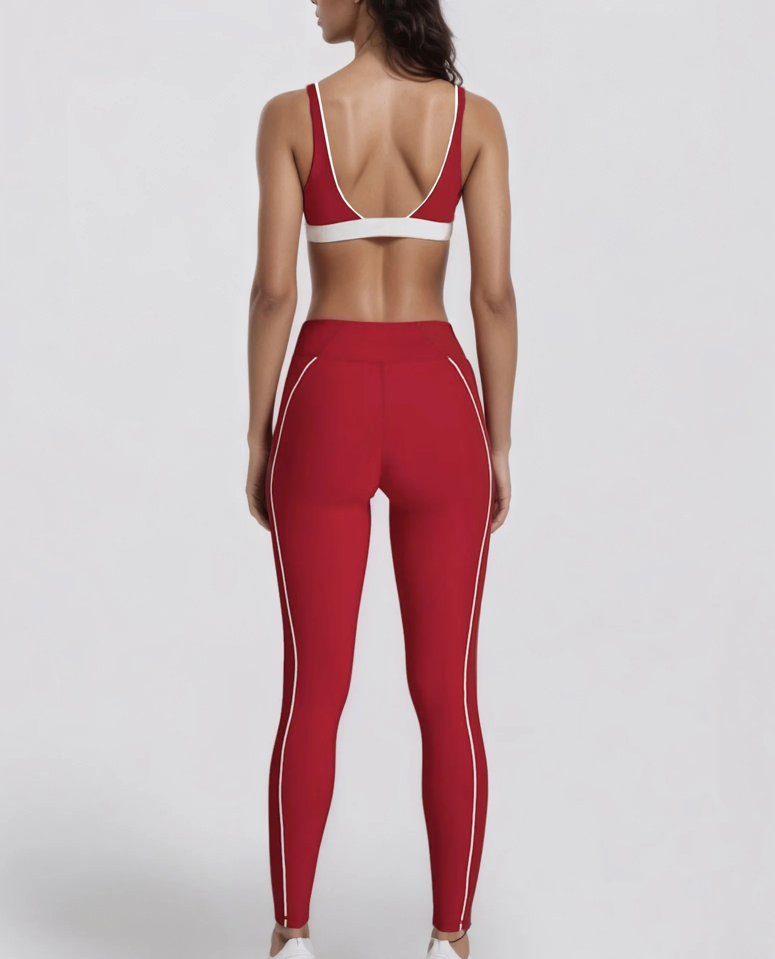 • Yoga Vest Contrasting Color V-neck Chest Pad Bra High Elastic Hip Lift Quick Drying Sports Running Training Fitness Trousers