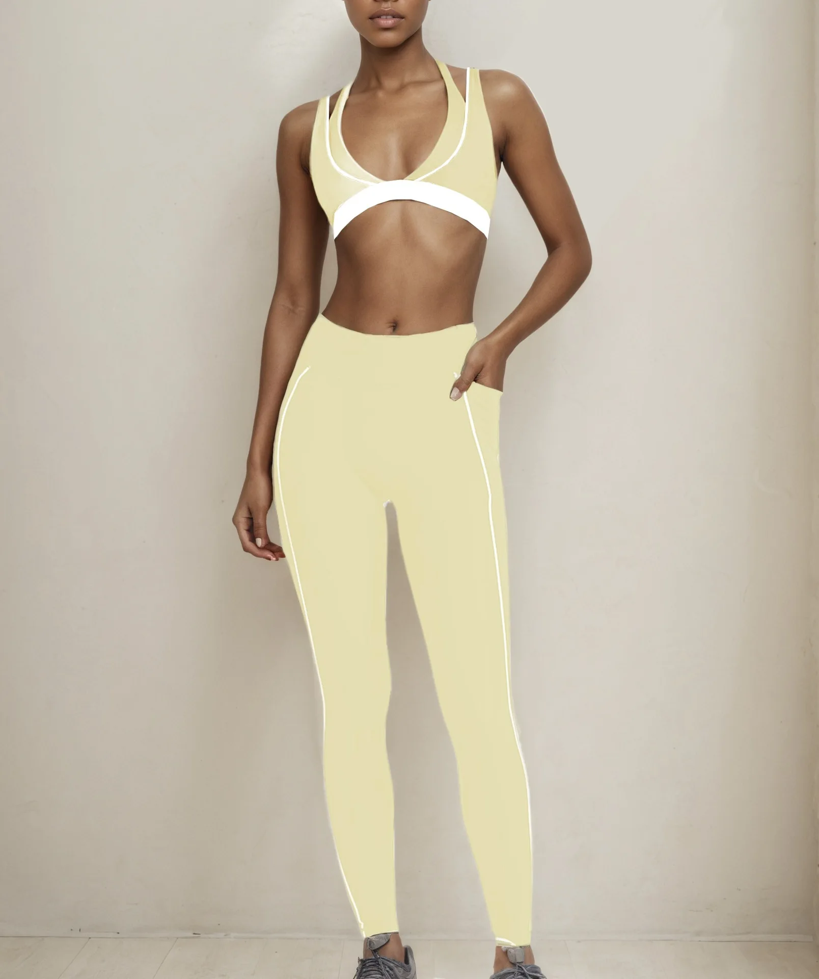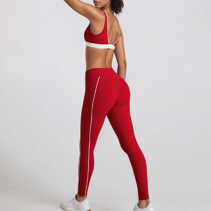 Yoga Vest Contrasting Color V-neck Chest Pad Bra High Elastic Hip Lift Quick Drying Sports Running Training Fitness Trousers