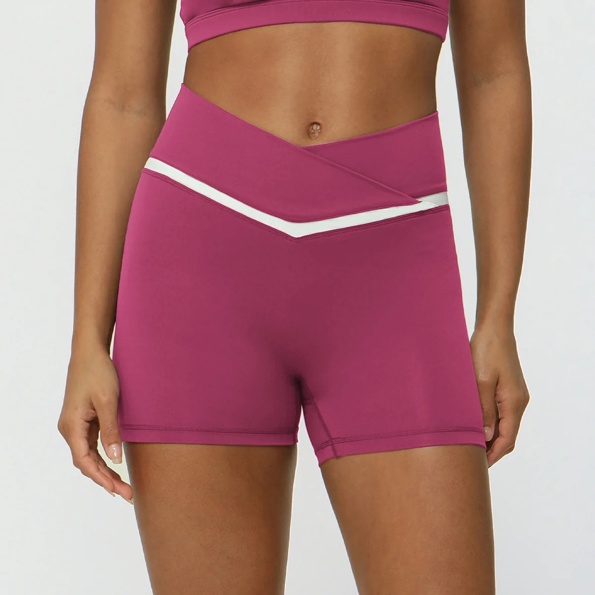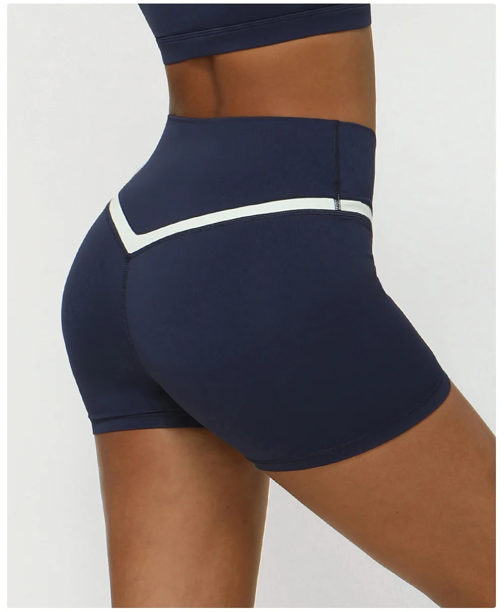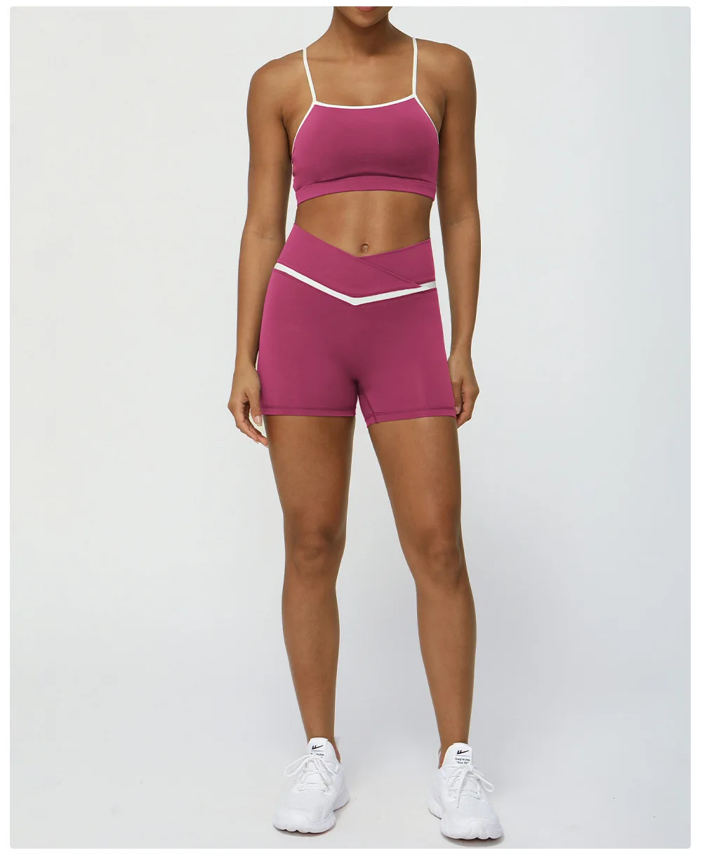 • Contrasting Color Cross V-waist Sports Shorts Casual Peach Hip Yoga Three-point Pants Tight Running Fitness Pants