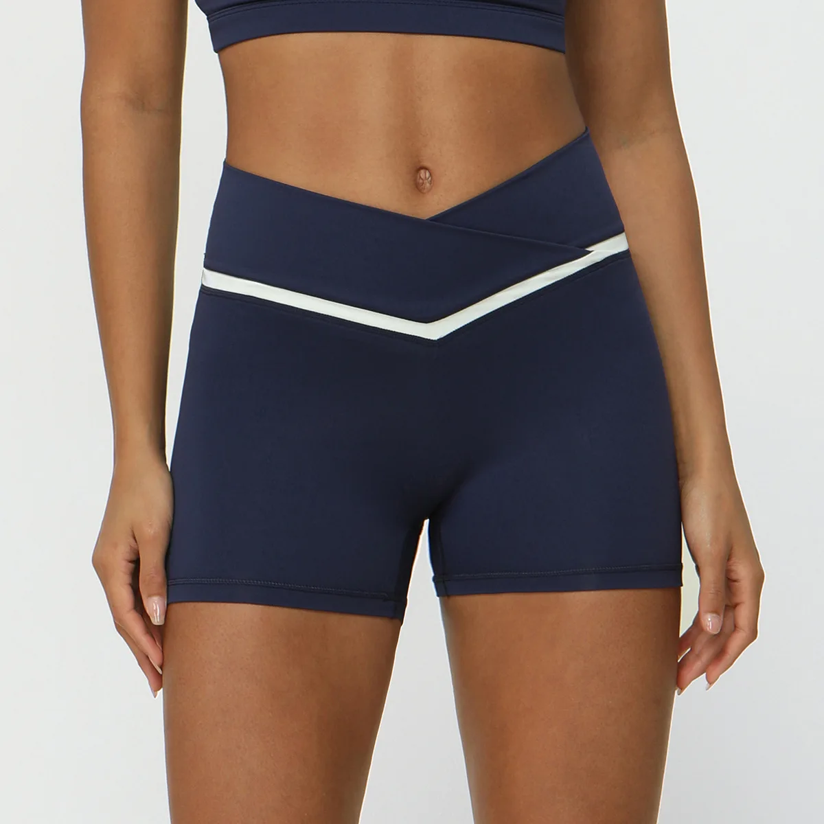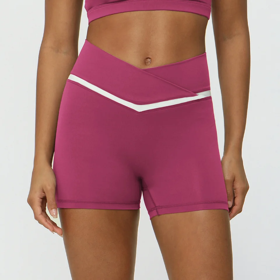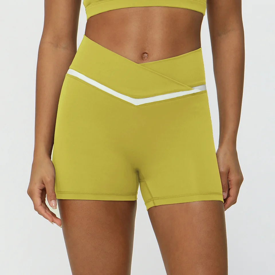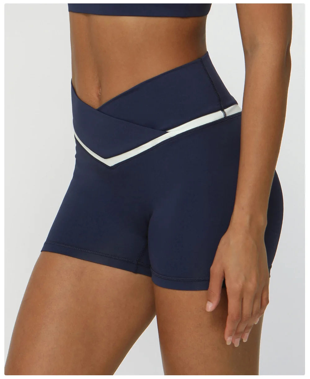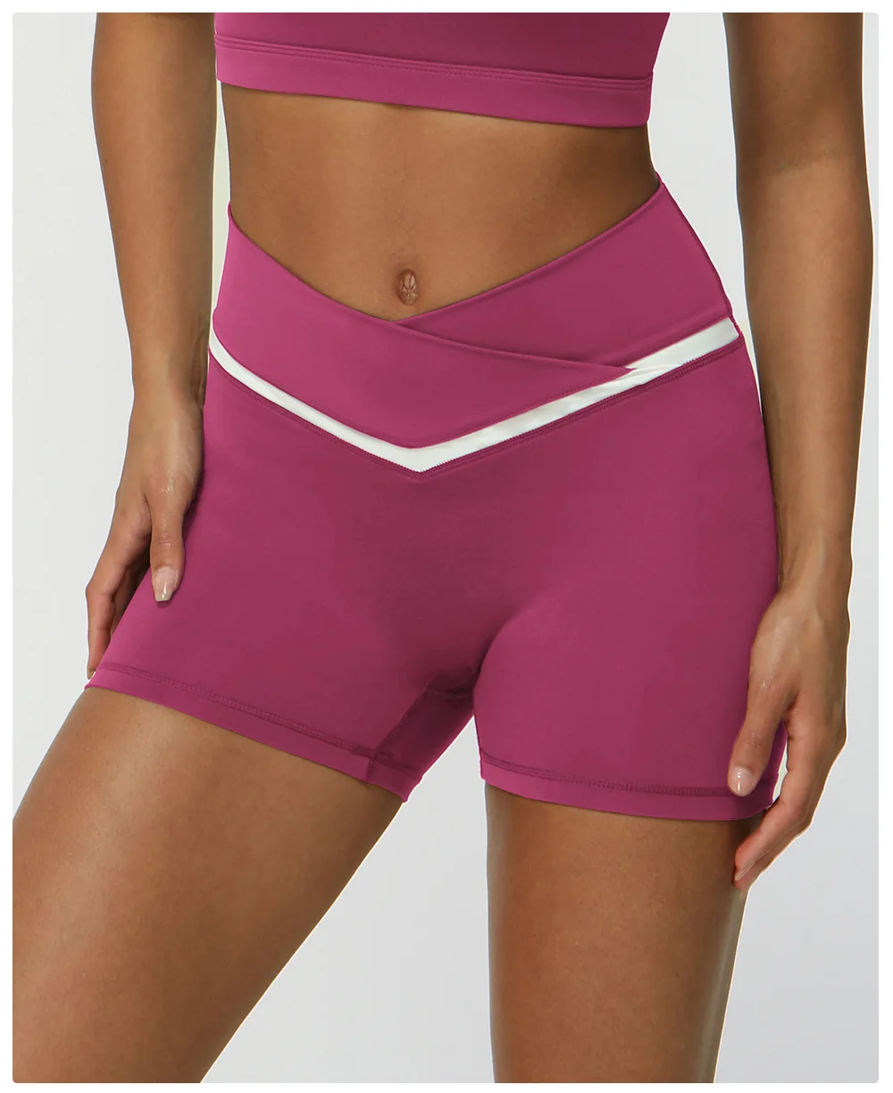 Contrasting Color Cross V-waist Sports Shorts Casual Peach Hip Yoga Three-point Pants Tight Running Fitness Pants